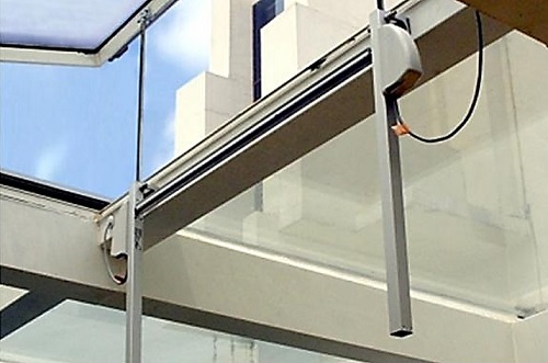 Механизм реечной автоматики, помещенный в ударопрочный корпус, позволяет управлять движением массивных оконных рам, зенитных фонарей и других конструкций.